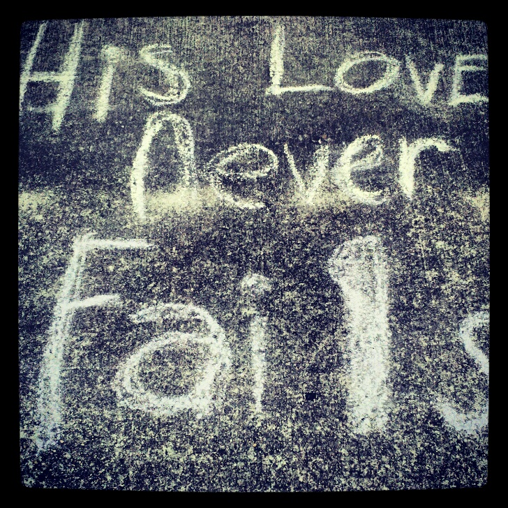 Another time ( I didn't see this. They told me) a guy drove up to a green light and STOPPED to ask if they were the ones who wrote on the sidewalks last week. They told him "yes" . He told them " I love God a lot but sometimes I wonder if He loves me. When I looked down and saw it written on the sidewalk. . It touched me. Thank you." WoW again!!